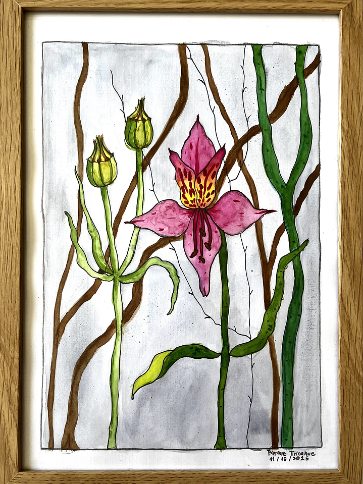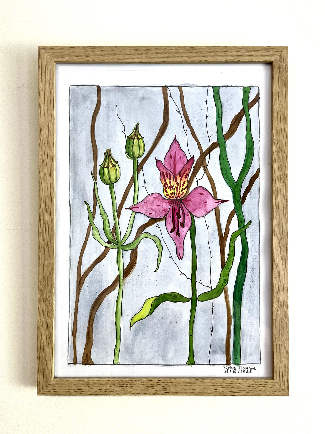 30 cm de alto y 20 cm de ancho | Ilustración en papel canson | Marco incluido en el precio